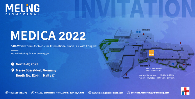 MEDICA 2022 -第54届世界医药论坛国际贸易展览会,由德国杜塞尔多夫展览公司(Messe D ü sseldorf GmbH)主办,被认为是世界上最大的医疗技术、电子医疗设备、实验室设备、诊断和药品贸易展览会。集市每年举行一次。以不可替代的规模和影响力,在世界医疗行业展会中排名第一,是医疗专业人士和医疗产品贸易商公认的不可错过的国际性盛会。